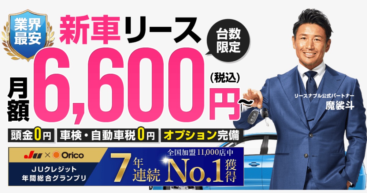 リースナブルは、株式会社三和サービスが運営するカーリース(車のサブスクリプション)サービスです。「安さ」と「スピード」に特化しており、独自仕入れによる格安価格と、在庫車を保有することによる即納車を実現しています。